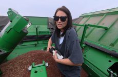 The University of Illinois Department of Animal Sciences farm crew harvesting a corn field on October 9, 2018. — Jim Baltz