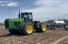 Video of a farm in southern Darke County Ohio putting on pre-plant anhydrous ammonia using their John Deere 8960 Tractor pulling a 19 shank DMI 5250 applicator tool bar and tank. I filmed this mid April 2025. The anhydrous ammonia is a form of nitrogen and will feed the corn they will be planting into this field. Mike Less – Farmhand Mike