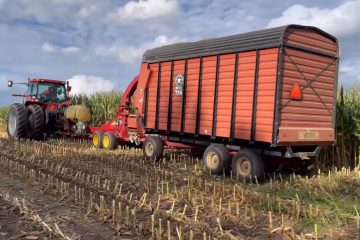 In this video I am out in the field with Zimmerman Family Harvesting as they are custom chopping wheat straw for a dairy farm near Wolf Lake Indiana. In the video they are running their brand new Claas Jaguar 1200 self propelled forage harvester and pickup header. Mike Less – Farmhand Mike